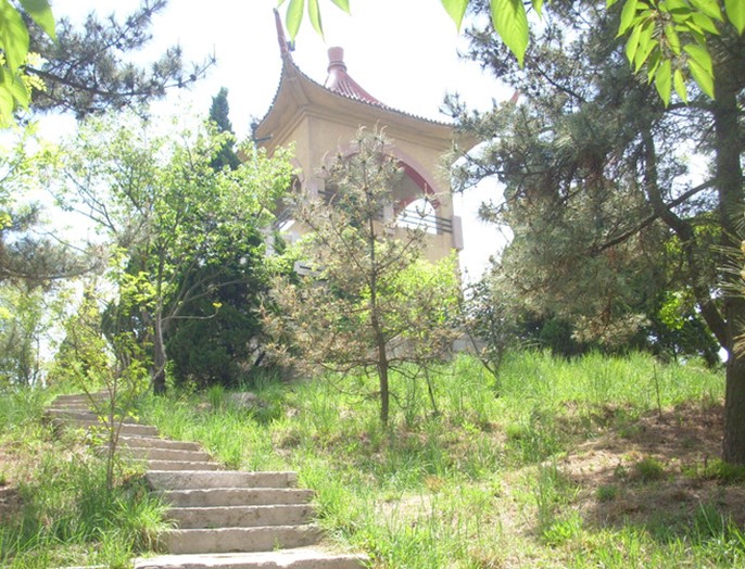 園內(nèi)有3處建筑十分引人注目,一座是“玫瑰園”,這是1936年孔祥熙修建的別墅,它粉墻紅頂,花崗巖墻壁上,鑲嵌一尊大型花崗巖獅頭浮雕,可想見當(dāng)年主人地位的顯赫。離此不遠(yuǎn)的山脊上,有一座二層方閣,翹角飛檐,黃色琉璃覆頂,名為“觀濤閣”登上此閣島城秀色可盡收眼底。北端山脊鞍部有一座新建的古堡式別墅,藍(lán)瓦黃墻、拱頂涼亭,堪稱青島近年建筑藝術(shù)的杰作。