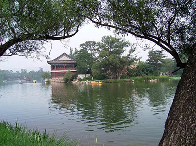 位于如意洲北澄湖內(nèi),島上主體建筑為仿浙江嘉興煙雨樓而建的煙雨樓 ,是皇帝觀賞煙雨的地方。樓前有殿門,門殿兩側(cè)為半封閉式圍廊,廊壁設(shè)計(jì)錦窗。東側(cè)有方亭,清楊書屋和八角亭,西側(cè)有對山齋和假山。山頂有亭,山腰有洞。山上枝繁草盛,雖是假山卻富真趣。