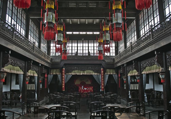 進(jìn)入大門即是一條寬闊的長(zhǎng)長(zhǎng)的甬路,構(gòu)成大院的中軸線,甬路上有形式各異、建筑精美的5座門樓。從南向北門樓逐漸升高,寓意為“步步高升”,而每道院門都是3級(jí)臺(tái)階,寓意為“連升三級(jí)”。道路東西兩邊各有五進(jìn)院落。東院為內(nèi)宅,有內(nèi)賬房、候客室、書房、鴛鴦廳、內(nèi)眷住房等,現(xiàn)在陳列著楊柳青年畫、泥塑、木雕、磚雕及天津民俗,細(xì)細(xì)觀覽,十分有趣。西邊的院落為接待貴賓的大客廳、暖廳、大戲樓、祠堂等,現(xiàn)已基本恢復(fù)了原有陳設(shè)。與內(nèi)宅相比,這里建筑用材更為考究,做工更為精細(xì)。大客廳院內(nèi)有高近5米的大天棚,可擋風(fēng)避雨,當(dāng)年從鎮(zhèn)外很遠(yuǎn)就能看到。版權(quán)所有山東聊城聊之旅國(guó)際旅行社有限公司,轉(zhuǎn)載必究!大戲樓寬敞華麗,可供200人聽?wèi)蝻嬔纾侨A北民宅中最大的戲樓,京劇名家孫菊仙、譚鑫培等都曾在此獻(xiàn)藝,其中花靈格扇全部是楠木原色,精雕細(xì)刻,極為華貴。西院的西邊還有三進(jìn)院落,是私塾先生教書及其他的專用房。