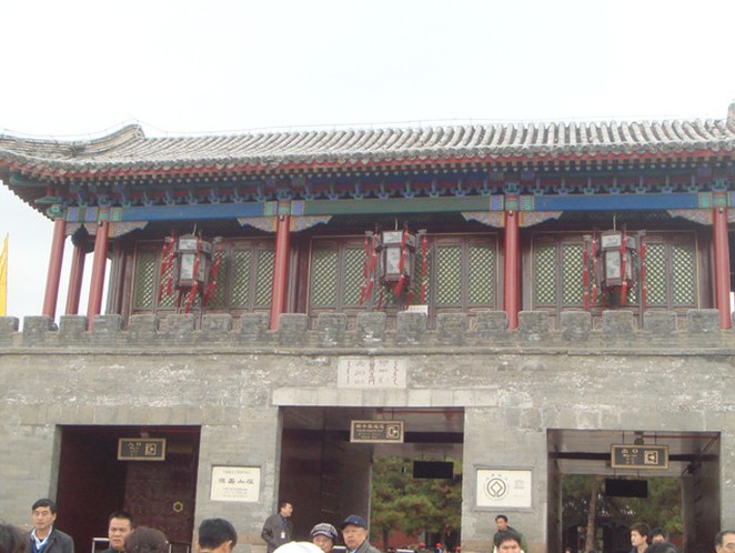 麗正門(mén)既是避暑山莊的正門(mén),也是正宮的正門(mén),建于乾隆十九年(1754年)。它是個(gè)重臺(tái)城門(mén),有三個(gè)長(zhǎng)方形拱門(mén)入口,重臺(tái)上建有城閣三間。門(mén)前列石獅一對(duì),左右立下馬碑各一,迎面建有30米長(zhǎng)的紅照壁。布局規(guī)格嚴(yán)整,風(fēng)格質(zhì)樸秀麗,為避暑山莊的乾隆三十六景之首。麗正門(mén)既是避暑山莊的正門(mén),也是正宮的正門(mén),建于乾隆十九年(1754年)。