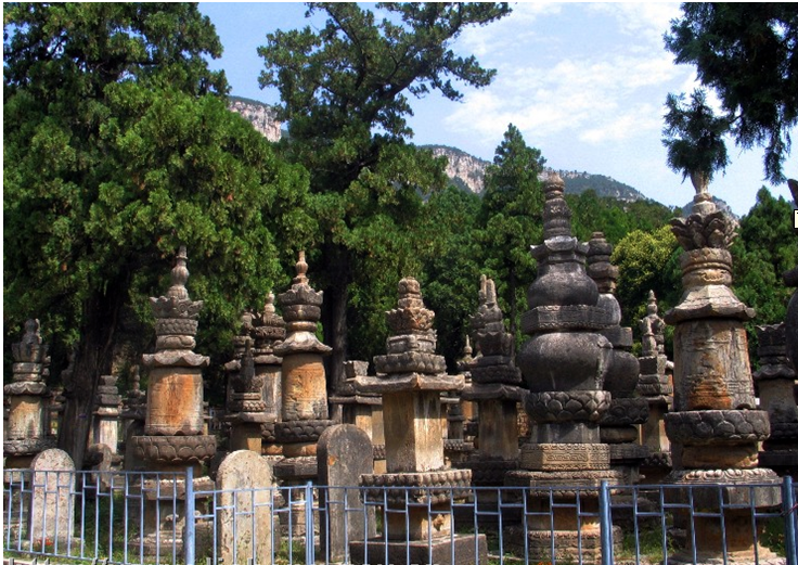 墓塔林中部為一南北甬道,其北端建有磚石結構、單層重檐式北魏祖師塔(法定墓塔),甬道兩側列峙全石結構群塔,依塔身形制分為方碑形塔、鐘形塔、鼓形塔、穿堵婆塔(喇嘛塔)、經幢式塔、亭閣式塔六種。