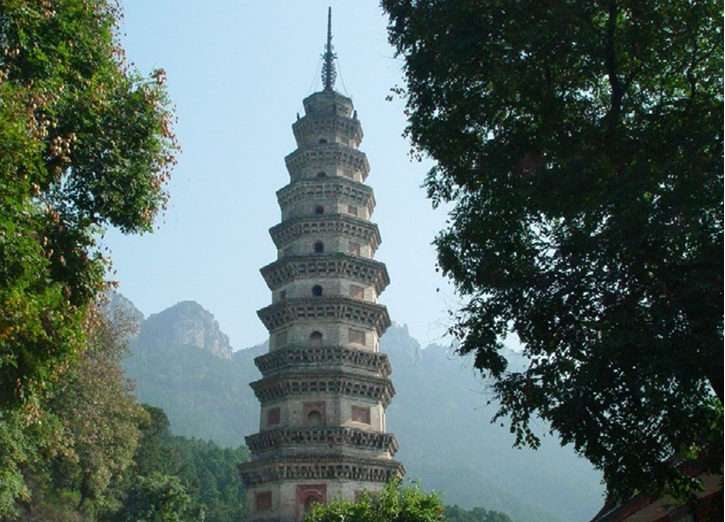 “辟支”出于佛教,音譯為“辟支迦佛陀”,略稱“辟支佛”,辟支塔,意即辟支佛塔。辟支塔為一座八角九層樓閣式磚塔,塔高55.7米,塔基為石筑八角,上有浮雕,鐫刻有古印度孔雀王朝阿育王皈依佛門等故事。塔身為青磚砌就,各層皆施腰檐,下三層為雙檐,二至四層檐下置平座。塔檐與塔徑自下而上逐層遞減,收分得體。塔內一至四層設塔心柱,內辟券洞,砌有臺階,可拾級而上,自第五層以上砌為實體,登塔須沿塔壁外腰檐左轉90度進入上層門洞。塔身上置鐵質塔剎,由覆缽露盤、相輪、寶蓋、圓光、仰月、寶珠組成,自寶蓋下垂八根鐵鏈,由第九層塔檐角上的八尊鐵質金剛承接,在塔內延續(xù)到地下,起避雷作用。辟支塔氣勢雄偉、造型美觀、結構復雜、比例適當,呈典型的宋代風格,為靈巖寺標志性建筑。宋代文學家曾鞏有詩贊曰“法定禪房臨峭谷,辟支靈塔冠層巒”。