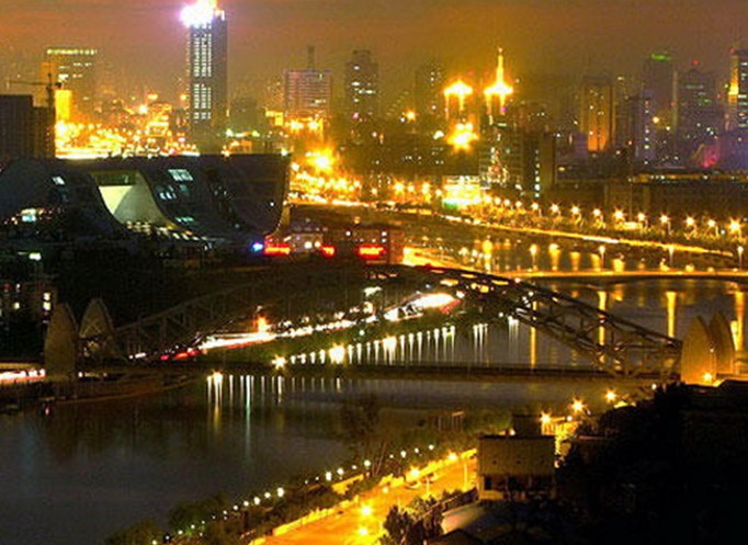 海河風(fēng)景線,始于三岔口,止于大光明橋,橫穿繁華的天津市區(qū)。它宛如一幅長(zhǎng)長(zhǎng)的風(fēng)景畫卷,景色包含美麗的海河公園、聞名于國(guó)內(nèi)外的望海樓教堂、雄偉壯觀的“老龍頭火車站”--天津站……但它最讓眷戀的卻是夜幕降下之后,海河流水閃爍的波光燈影的美,流動(dòng)不息的美。那兩岸若明若暗的各色燈光,倒映在河中,浮如絢麗的彩霞,緩緩的流水,又把一道道彩霞送向遙遙的遠(yuǎn)方,使人們產(chǎn)生無(wú)限的遐思。