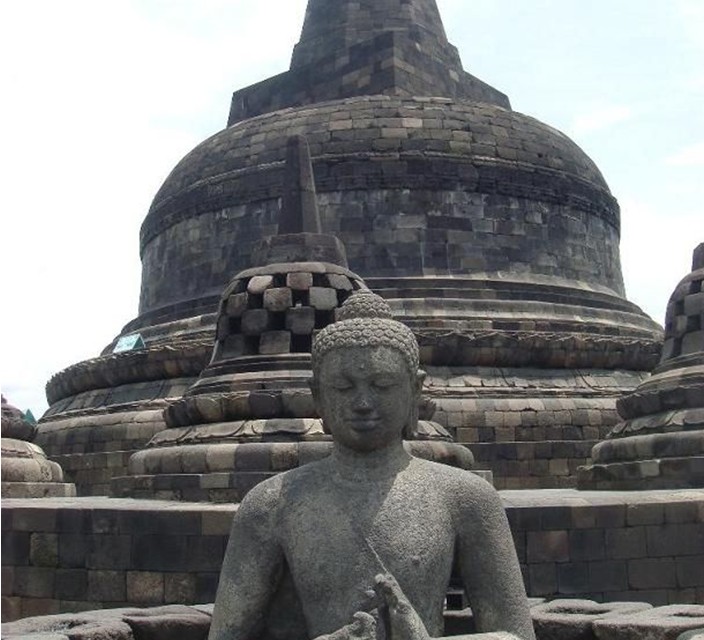 婆羅浮屠位于印度尼西亞,大約于公元750年至850年間,由當(dāng)時(shí)統(tǒng)治爪哇島的夏連特拉王朝統(tǒng)治者興建。“婆羅浮屠”這個(gè)名字的意思很可能來(lái)自梵語(yǔ)"Vihara Buddha Ur",意思就是“山頂?shù)姆鹚?rdquo;。后來(lái)因?yàn)榛鹕奖l(fā),使這佛塔群下沉、并隱蓋于茂密的熱帶叢林中近千年,直到19世紀(jì)初才被清理出來(lái)。與中國(guó)的長(zhǎng)城、印度的泰姬陵、柬埔寨的吳哥窟并稱為古代東方四大奇跡。