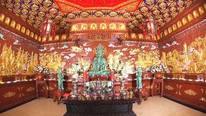 景區(qū)興建了10余處風格獨特的景點,其中,投資1億多元的金寶塔建筑面積1萬多平方米,塔高22層,塔內(nèi)供奉的9999尊金佛共耗純金2600兩,塔頂安奉六世班禪活佛舍利一顆。另外,耗純金650兩,白銀4000兩鑄造的三世金佛、高1.9米,重1.6噸的翡翠觀音等稀世珍寶將園區(qū)裝點成佛教圣堂。