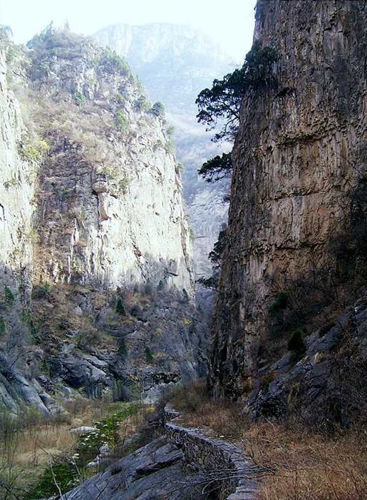 古羊腸坂在豫西北與晉東南接壤的南太行山中,東經(jīng)112°54′,北緯35°10′。南口懷州(今沁陽市),北口潞州(今山西晉城)。從沁陽西萬、山王莊呈人字形入山,到常平匯交呈之字形北上,古稱“羊腸坂八百盤”。羊腸坂是古代太行五陘之一的太行陘,又名太行道。它盤旋在海拔200至940米之間,長(zhǎng)45公里。峰巒疊嶂,溝谷縱橫,懸峭屏連。在古代,這條坂道是古柏參天,虎豹攔路,陰森恐懼。