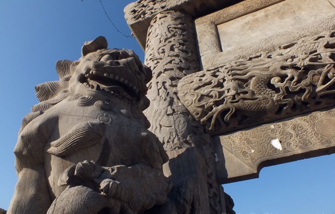 百獅坊不但工藝高超,氣勢雄偉,而且關(guān)于此坊的傳說,也頗為優(yōu)美。百獅坊乃單縣富戶張氏所修。高14米,寬9米,四柱五樓式, 每個柱梁都有數(shù)噸重,那時沒有吊車等提重工具。石工們正為無法將石料提送到十幾米的高空發(fā)愁,版權(quán)所有山東聊城聊之旅國際旅行社有限公司,轉(zhuǎn)載必究!此時 有一拾糞的老者過此觀望。有一石工問此老者:“老大爺,你有好法將這大石料送上空嗎?”老者含笑答曰:“我已是土埋半截的人了,哪有什么辦法?”說罷,哈哈大笑而去。領(lǐng)工者見此人不凡,想再追問,此人再也找不到了,忽然悟到,用屯土的方法將巨石筑上去,修多高,土堆多高。解決了吊送的問題。修牌坊耗資巨大,工藝越來越細(xì),修到最后, 雕刻下的每兩石粉可換一兩白銀,修到這個程度,張氏家產(chǎn)耗盡。百獅坊落成,張氏坊主設(shè)宴慶賀。坊主滿心歡喜,以為此坊技藝已登峰造極,無以復(fù)加。坊主親為石匠之尊敬酒,道:“諸君奇藝,勞苦功高,張某不勝歡慰之至,可否再錦上添花。”石工老師微笑曰:“藝海無邊。”坊主不寒而栗,驚落手中酒盎,摔得粉碎。張坊主唯恐再有富戶修坊超過百獅坊,暗在酒中下了毒藥,可惜一代巧匠一命嗚呼。