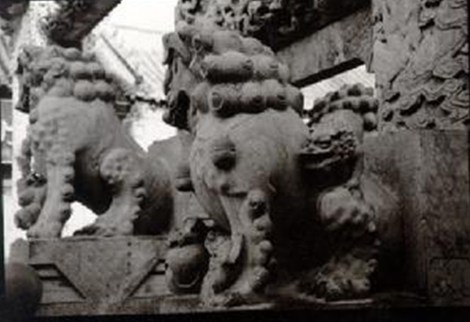 八根夾柱分八組雕刻百個石獅。大獅巨頭卷毛突目,隆鼻闊口利齒,巍然蹲踞,矯捷威猛。每個大獅身上攀伏著五個小獅,有的撓癢自娛,有的伏在大獅的腿上,舔咂撫鈴。獅座前左右三面浮雕圓形松獅圖,幼獅三三兩兩,蹦跳翻滾,爭戲繡球。每根立柱透雕四條蛟龍,在柔美飄逸的祥 云間卷舒出沒,盤旋回舞。正間上下額枋、次間額枋及正檐下“圣旨”匾四周鏤空透雕二龍戲珠,雕龍懸目奮爪,搖頭擺尾,如騰似飛。正間中額枋上分三層鏤空透雕串枝牡丹,給人以五彩繽紛、香沁肺腑之感。牡丹間以變形的“卍”字形云紋,寓意“富貴萬年”,樓檐下獸斗花拱,如意枋板承托。脊和檐角上雕配的吻獸、象尊、岔獸、魚、海馬、跑獸皆造型優(yōu)美,生動傳神。吻尾外卷張口吞脊,每個吻獸身上又浮雕兩條游龍,生動活潑,象馱寶瓶,憨態(tài)可掬。正脊中間雕塑二龍朝天,相托一珠瓶類飾物,像塔剎一樣高聳空中。其他部位也均浮雕、平雕有雙龍、牡丹、菊花、團(tuán)鶴、團(tuán)壽等吉祥圖,正間下枋板的孔鼻上還雕一懸掛石鳥籠,微風(fēng)吹來,石鳥翩翩展翅,呤叮作鳴。整座牌坊結(jié)構(gòu)精巧,宏偉壯觀,雕刻精細(xì),玲瓏剔透,繁而不亂,主次分明,是全國罕見的典型清代石雕建筑。