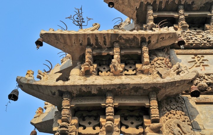 而百獅坊則俗稱張家牌坊,被譽(yù)為天下第一坊,位于牌坊街中段。因其夾柱精雕一百個姿態(tài)各異的石獅子而得名,版權(quán)所有山東聊城聊之旅國際旅行社有限公司,轉(zhuǎn)載必究!寓有百事(獅)如意,百世(獅)多壽(獸)之意。乃清乾隆四十三年(1778年)為贈文林郎張蒲妻朱氏而建,全石結(jié)構(gòu),高14米,寬9米,四柱三間五樓式,正間單檐,次間正檐,歇山頂,全部石砌。坊座八根夾柱透雕群獅八組,大獅子獰猛崢嶸,小獅子環(huán)繞戲耍。每根夾柱前、左、右三面均浮雕松獅圖。四柱和枋額上透雕云龍,其它部位也透雕加浮雕云龍旋舞,珍禽異獸、花卉圖案