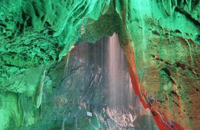 然而,進(jìn)入洞中的人們卻發(fā)出了一長(zhǎng)串慨嘆。洞中博大精深。似巨龍扭轉(zhuǎn)的洞體,氣貫長(zhǎng)虹而又時(shí)現(xiàn)玲瓏和雅致。地面已由人工鋪筑了水泥,兩側(cè)護(hù)欄纏繞,洞中小溪潺潺流淌。空中乳石滴垂,有的如筍向上飛穿,也有的似瀑流空垂高掛。洞頂如魚脊背,漸慢成一線,有的如牛角斜出,旋轉(zhuǎn)成小洞,稱為“天眼”。有的地方空中又搭懸橋,出現(xiàn)洞中懸洞。主洞寬處可容奔卡車,側(cè)洞、支洞的狹窄處游人只能俯身低眉,甚至要匍匐前行。洞中有穹廬似的頂端如螺旋轉(zhuǎn),向上越旋越細(xì),直刺高空,似歐洲的古建筑潛于地下。