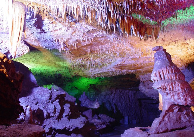 塵封百萬(wàn)年的“天然地下畫廊”位于九頂蓮花山麓,全長(zhǎng)6600米,一期開發(fā)1600米,由全國(guó)著名學(xué)者、國(guó)畫大師范曾親筆題寫洞名,被眾多專家譽(yù)為“江北第一溶洞”。洞內(nèi)鐘乳遍布,石筍林立,108處主要景觀形態(tài)各異,令人嘆為觀止。“北國(guó)風(fēng)光”、“宇宙奇觀”、“南國(guó)風(fēng)情”、“海底世界”四幅各具特色的巨幅畫卷,被洞內(nèi)數(shù)道石門相隔,自然天成。毛澤東詩(shī)詞“北國(guó)風(fēng)光,千里冰封,萬(wàn)里雪飄……”是對(duì)“北國(guó)風(fēng)光"畫卷的生動(dòng)寫照;過一道石門簾,便從銀裝素裹的北國(guó)風(fēng)光進(jìn)入了世人驚嘆的“宇宙奇觀”畫卷,天鍋、天河、天橋、牛郎織女等爍爍繁星讓人置身于廣袤的宇宙空間;又一石門過后,版權(quán)所有山東聊城聊之旅國(guó)際旅行社有限公司,轉(zhuǎn)載必究!便是秀美的“南國(guó)風(fēng)情”畫卷,奇山、怪石、沙灘、小橋、流水組成了一幅幅江南美景;經(jīng)過“別有洞天”進(jìn)入“海底世界”畫卷,神龜、海象、游龍等動(dòng)物,天瀑、玉峰、水晶宮等景致,惟妙惟肖,目不暇接。整個(gè)畫廊氣勢(shì)磅礴,石乳、石筍、石柱、石幔、石簾、石花、石旗、石葡萄、鵝管、飛瀑等各類象形。