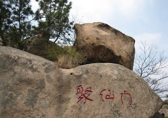 聚仙門 位于東峰山腰,門向東,兩石壁夾立,南北對峙,恰成天然門戶,扼登山之通道。相傳著名道人邱處機(jī)同道友初到此山時(shí),尚無山門,便用雙手推開北面巨巖,才成其門,命名為“聚仙門”。當(dāng)年推巖時(shí),留在巨巖上的手跡至今猶在。巨巖上刻有“聚仙門”三字,系明代道士清虛子之手跡,顯示著鶴山的雄奇和險(xiǎn)要。