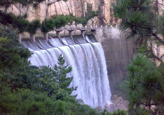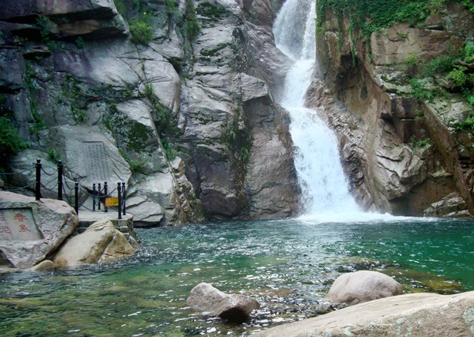又稱玉龍瀑。在嶗山南部八水河中游,北距上清宮約1公里。周圍巖壁峭立,八水河至此,沿20米高、10余米寬的絕壁懸空倒瀉,噴珠飛雪,狀如玉龍飛舞。瀑布落下十幾米,與石壁相擊,分?jǐn)?shù)股跌入潭中。碧水凝寒,清澈見底,潭旁巨石上鐫“龍?zhí)镀?rdquo;三字。大雨過后,山洪暴注,飛騰叫嘯,更為壯觀,故有“龍?zhí)秶娪?rdquo;之稱。周至元有詩贊曰:“凌空亂濺沫,疑是玉龍飛。白掛虹千仞,青山環(huán)一圍。拋來珠落落,舞處雪霏霏。游客貪清賞,斜陽不忍歸。”
