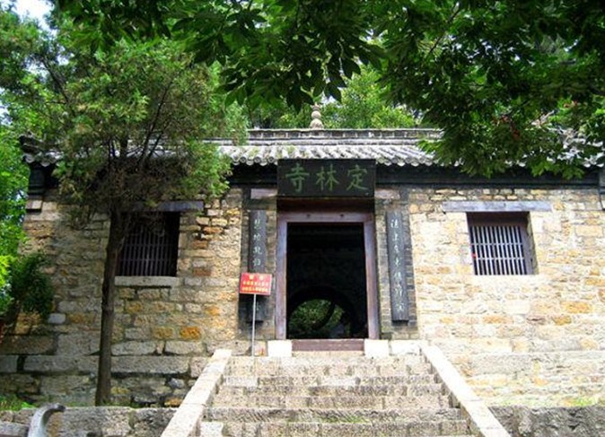 在山東莒縣浮萊山定林寺內(nèi)。定林寺,相傳始建于南北朝,今存建筑為清代重修。主要建筑有大佛殿、三教堂、校經(jīng)樓等。校經(jīng)樓原名毗盧閣,相傳為劉勰校閱經(jīng)籍處,故名。劉勰(465—532年)字彥和,莒(今山東莒縣)人。篤志好學(xué),梁武帝時,曾任奉朝請、東宮通事舍人等職,為昭明太子蕭統(tǒng)所器重。晚年在定林寺出家,法名慧地。