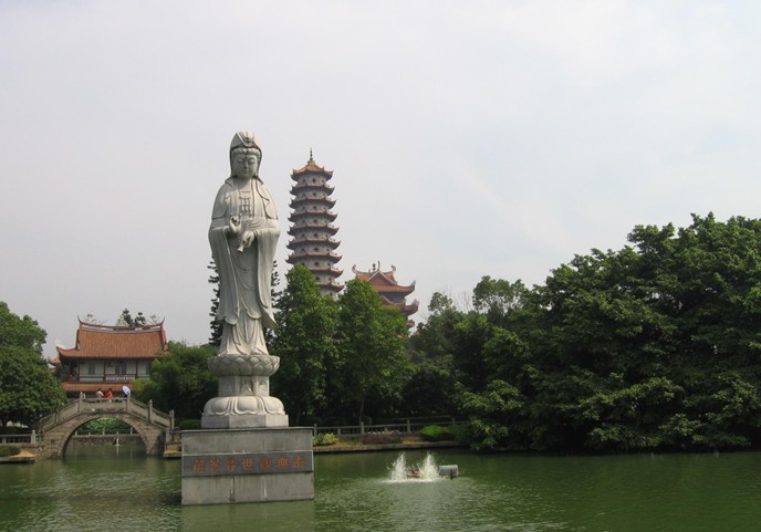 西禪寺名列福州五大禪林之一,為全國重點寺廟,位于西郊怡山之麓,在工業(yè)路的西邊,比鄰于福州大學的南側(cè),巍峨而壯觀。門票20元、學生票10元。古剎大門坊柱上鐫刻一副楹聯(lián):“荔樹四朝傳宋代,鐘聲千古響唐音。”這是清代周蓮撰寫的聯(lián)句,點明"西禪寺"是唐朝的古寺。