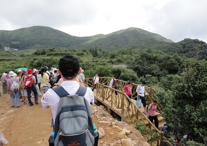 云天石廊景區(qū)。云天石廊是青云山景區(qū)主峰,在青云峰近山頂處,高1000米,又稱“登天廊”。 由三座山峰組成,山勢(shì)雄偉挺拔,峽谷崎嶇險(xiǎn)峻,以一道云龍穿崖、橫斷絕壁的千米石廊而名聞遐邇。遠(yuǎn)可觀,近可行,四層環(huán)山石廊,寬處有7米,窄處只有1米,古樹老藤為欄,奇草異花,凌空絕壁,人形其中,驚而不險(xiǎn),妙不可言狀。主要觀賞景點(diǎn):飛瀑三潭、妙筆生花、雄獅吼天、水車瀑布、濟(jì)生潭、長(zhǎng)生潭、天塹、鎮(zhèn)山大鐘、靈芝巖、羚羊洞、狀元曬靴、金雞相斗、音樂廣場(chǎng)、云天石廊等景觀,若于晨曦中登頂俯瞰,可見“青峰出云海、巍峨連天來”。