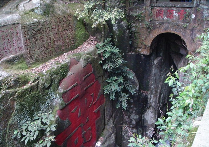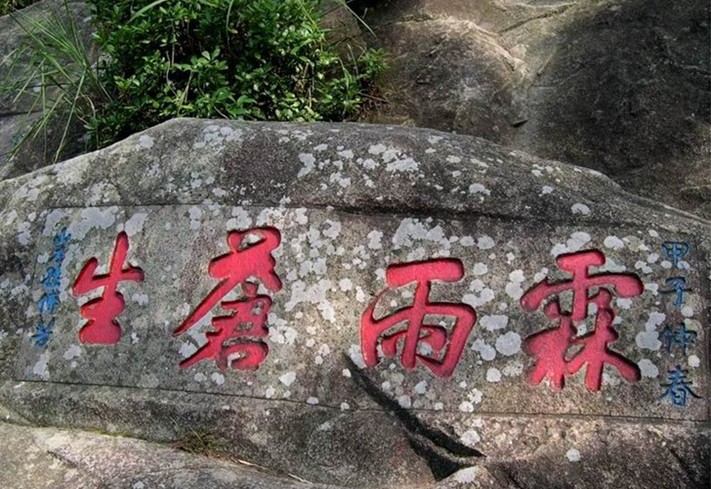 北宋大書法家蔡襄等題名“邵去華,蘇才翁,郭世濟,蔡君謨,慶歷丙戌(1046年)孟秋八日游靈源洞”,為全山最早的石刻。“喝水巖”為宋嘉祐六年(1061年)施元長所題;二段“國師巖”題刻分別為宋蔡襄和慶歷進士陳襄所題。刻在靈源洞蹴鰲橋下深澗巖壁上的“壽”字,楷書,字高4.15米,寬3.05米,是福建省最大的古代摩崖石刻之一。在橋下西南側巖壁刻有“頑石點頭”佛像,像高2.45米,手捧經卷,趺坐蒲團。在觀音閣東側石門巖上,刻有郭沫若于1962年11月游鼓山涌泉寺詩:“節(jié)屆重陽日,我來訪涌泉。清風鳴地籟,凝雨濕山川。浮嶺多松柏,依崖有杜鵑??纪みz址在,人跡卻蕭然。”