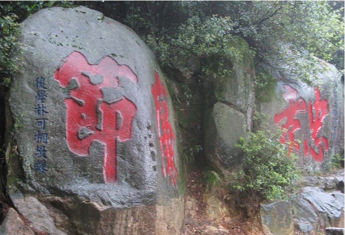 摩崖石刻位于福建省福州市境內,也是鼓山名勝之一。據記載,鼓山摩崖題刻共有180處,估計全山石刻不下300多處,其中著名的有喝水巖下石壁上刻的“壽”字,字徑為4米,為南宋著名大書法家朱熹所書。縱觀鼓山刻石,上起北宋,下迄清代以至當代,前后延續(xù)近千年,內容豐富,字體篆、隸、行草、楷俱全,堪稱福州碑林,對研究中國古代書法藝術有重要參考價值。