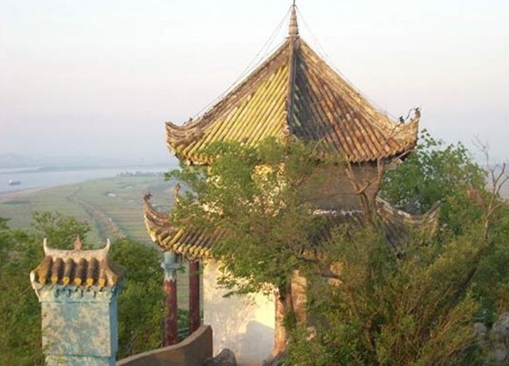 小孤山南岸與彭浪磯相對(duì)峙,江流湍激如沸,海潮至此不得上,因有“海門第一關(guān)”之稱,為橫鎖長(zhǎng)江的“楚塞吳關(guān)”。小孤山主要建筑是始建于唐代的啟秀寺,坐落在半山腰,青瓦紅墻,寺內(nèi)祀奉著小姑娘娘像,民稱“小姑廟”。小姑,乃民間傳說中一位純情美麗的少女。她與彭郎相愛,但終難成眷屬,于是投江殉情,死后化作秀資超然的“小孤山”,又名“小姑山”。彭郎因悲于小姑之死,遂化成石磯,立于江邊,即“彭浪磯”,亦名“彭郎磯”。山頂“梳妝亭”,傳為小姑梳妝處。亭臺(tái)甚雅,六角兩層,且可憑窗眺云山沃野。亭后“長(zhǎng)生樹”,又稱“梭羅樹”,從石罅中生出,高壯蔥茂。老者云:“此樹酷似月亮里的神樹。天上織女星用的那把梭子就是用這棵樹剜的”。小姑廟歷來香客眾多,香火鼎盛。