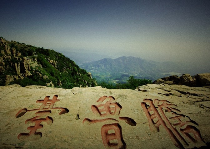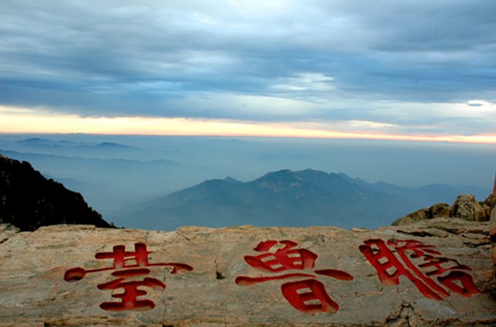 瞻魯臺位于日觀峰南側(cè),石梁突兀,平展如臺,臺上有巨石,上刻“瞻魯臺”三大字,寓意在此可遠瞻魯國曲阜。