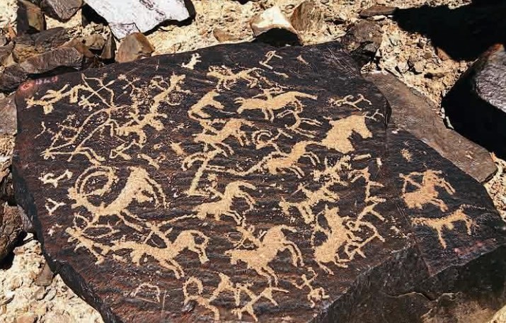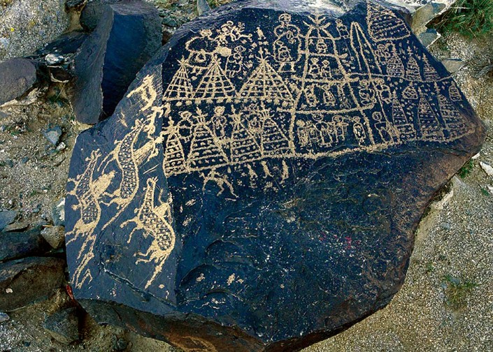 據(jù)巖畫的色澤和水溫水位資料推測,大約在幾千年前,曼德拉山四周湖水環(huán)繞,是一個水草豐美的地方。這里,先后曾有匈奴、鮮卑、黨項、蒙古等許多游牧、狩獵民族在山周水草間繁衍生息,留下了可尋的蹤跡。這滿山巖石面上留下的精湛生動的藝術(shù)圖案,反映的就是這些民族部落的歷史。