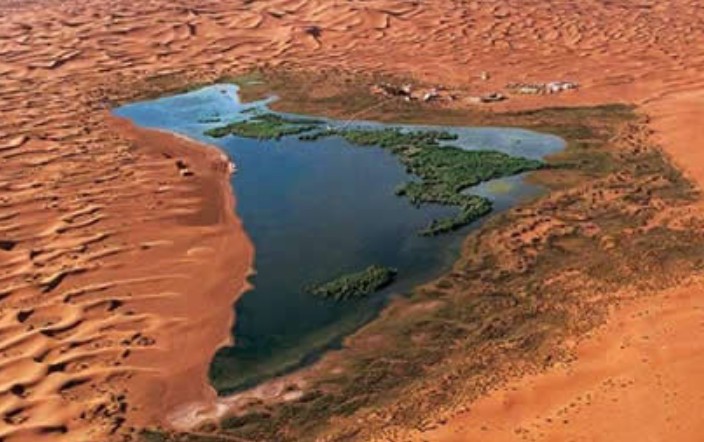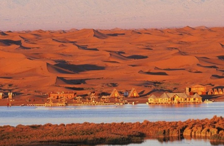 騰格里沙漠月亮湖旅游區(qū) 位于中國內(nèi)蒙古阿拉善盟境內(nèi)騰格里沙漠腹地,月亮湖是距離國內(nèi)各大城市半徑最短的沙漠探險(xiǎn)營地,是現(xiàn)代都市人尋求緊張競爭生活之外的驚險(xiǎn)刺激與徹底放松身心的最佳游程。月亮湖有三個(gè)獨(dú)特之處:一是形狀酷似中國地圖:站在高處沙丘一看,一幅完整的中國地圖展現(xiàn)在眼前,蘆葦?shù)姆植几菍⒏魇^(qū)一一標(biāo)明;二是湖水天然藥浴配方:面積三平方公里的湖水,富含鉀鹽、錳鹽、少量硭硝、天然蘇打、天然堿、氧化鐵及其它微量元素,與國際保健機(jī)構(gòu)推薦藥浴配方極其相似。