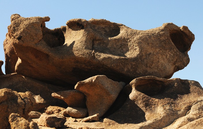 海森楚魯怪石城位于阿拉善右旗努日蓋蘇木境內(nèi),距旗府所在地220公里?!昂I敗睘槊烧Z音譯,意為象鍋一樣的石頭。在方圓二十余公里的地方,大到幾十立方,小到拳頭大小的風蝕原石隨處可見, 怪石林立,形態(tài)各異,有象臨空欲飛的碩大雄鷹,有象“蘑菇云”……各式各樣,栩栩如生,與云南石林,黃山怪石相比也并不遜色,使人感到大自然神賜般的無窮魅力。