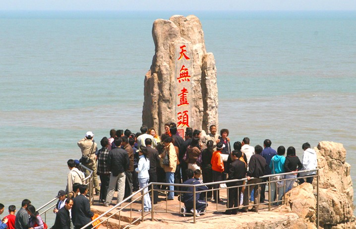 1984年10月23日,胡耀邦視察成山頭,見(jiàn)眼前海天一片。大海浩翰,峭壁巍然,巨浪飛雪,氣勢(shì)恢宏壯觀,感仿秦漢古韻,不禁有感而發(fā),揮筆手書(shū)“心潮澎湃”、“天盡頭”七個(gè)字,“天盡頭”三字立碑于此,碑高180cm,碑寬85cm,碑厚35cm。