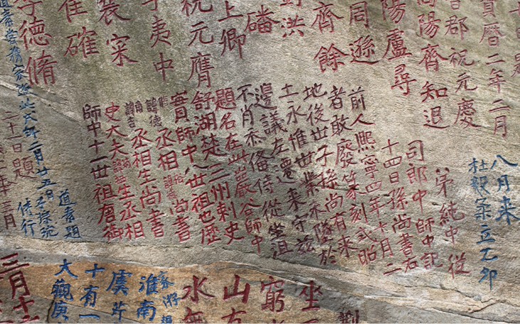 元代以后,眾多游客蜂擁山谷,也留下大量的文字石刻。除了式照唐宋時(shí)的題名、題詩(shī)以外,在石刻文字的內(nèi)容方面出現(xiàn)一些新的變化,比如出現(xiàn)了大量的用簡(jiǎn)短詞語(yǔ)贊嘆山、洞、泉、石景色的特點(diǎn)。同時(shí),石刻文字的體積增大,字徑往往有一、二尺之多,這都是過(guò)去所少見(jiàn)的。明代詩(shī)人、安慶知府胡纘宗在石牛上大書(shū)“石牛”2字,并刊刻了《山谷寺》詩(shī):“摩詩(shī)坐山谷,谷水身邊流,篆密龍蛇動(dòng),潭空牛女游”, 版權(quán)所有山東聊城聊之旅國(guó)際旅行社有限公司,轉(zhuǎn)載必究!此詩(shī)十分形象地描繪了石牛臨澗的景色,令人涌不絕口。胡纘宗還有“山谷”大字題刻,字徑2尺。其它像嘉靖時(shí)御史大夫李元陽(yáng)、成化時(shí)書(shū)法家袁慶祥等人的題名以及大量的“涪涪山谷”、“流云上流”、“天下奇觀(guān)”、“水光天色”、“龍門(mén)”、“獨(dú)醒處”、“安慶名山”、“幽思”等,都有一定的歷史研究與欣賞價(jià)值。從書(shū)法的角度看,這里的石刻包括有隸書(shū)、楷書(shū)、草書(shū)、篆書(shū)、行書(shū)等多種,每種書(shū)體中又富于變化,各具特色,基本上代表了唐代以來(lái)我國(guó)書(shū)法藝術(shù)發(fā)展演變的風(fēng)貌,是一處珍貴的書(shū)法藝術(shù)寶庫(kù)。