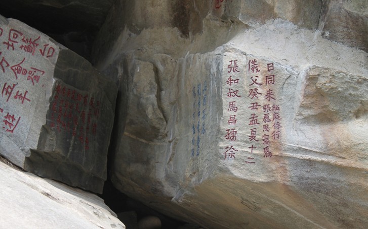 山谷流泉中的3處年代最早的石刻都是唐代的,它們均分布在石牛古洞東壁懸崖上。其中2處是唐代著名散文家,哲學(xué)家李翱任舒州刺史時(shí)游覽山谷的題名。李翱字習(xí)之,隴西成紀(jì)(今甘肅秦安)人。貞元進(jìn)士,授校書(shū)郎,后任國(guó)事博士。元和十五年以后任廬州刺史、舒州刺史,長(zhǎng)慶二年(822年)壬寅游石牛古洞。所刻題名為“翱炅磷盤(pán)求壬寅年下元日習(xí)之書(shū)”、“挎儲(chǔ)弘運(yùn)上卿盤(pán)長(zhǎng)慶二年十月廿六日馀奉處交口”,均為真書(shū),或橫排,或豎書(shū)直排。還有一處唐代13人題名石刻,系舒州刺史李德修于寶歷二年(826年)所刻。此刻楷書(shū)15行,上下豎書(shū)成行,字徑7厘米,書(shū)法遒勁渾厚。版權(quán)所有山東聊城聊之旅國(guó)際旅行社有限公司,轉(zhuǎn)載必究!據(jù)《唐書(shū)》載:李德修于寶歷時(shí)出任舒州,后任尚書(shū),為唐代著名的文學(xué)家。