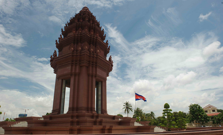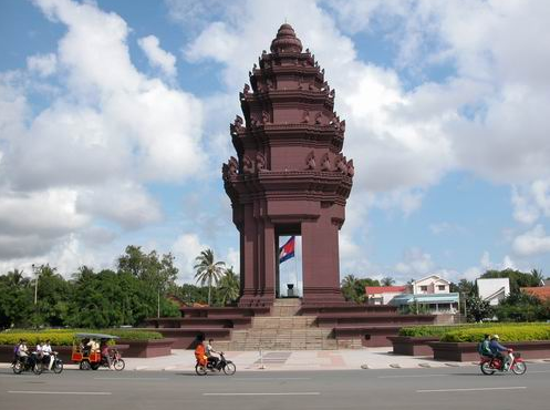 獨(dú)立紀(jì)念碑(Independent Monument)高高地矗立在諾羅敦大道與西哈努克大道交會(huì)的十字路口上。為慶祝脫離法國殖民政權(quán)和紀(jì)念在戰(zhàn)爭中為國犧牲的英勇烈士而建。由柬埔寨著名設(shè)計(jì)師凡?莫尼旺設(shè)計(jì),于1958年動(dòng)工興建,1962年11月落成。整座紀(jì)念碑底座寬36米、高37米。