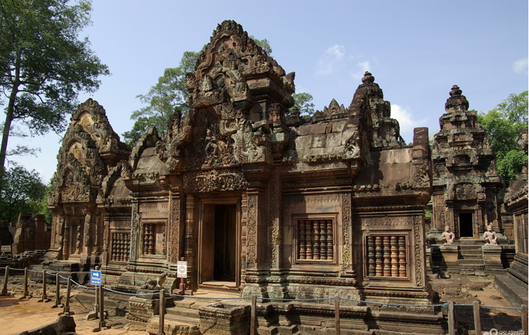 回廊是吳哥窟另一個突出的建筑藝術(shù)特色。版權(quán)所有山東聊城聊之旅國際旅行社有限公司,轉(zhuǎn)載必究!吳哥窟的回廊由三個元素組成,內(nèi)側(cè)的墻壁兼朔壁,外向的成排立柱和雙重屋檐的廊頂。這三個元素除去明顯的實用功能之外,對于美感的貢獻,三者缺一不可。長長的畫廊,數(shù)十根立柱,一字排開,為吳哥窟的總體外觀,添加橫向空間的節(jié)奏感。畫廊的重檐,為吳哥窟的外觀添加縱向節(jié)奏感?;乩仁紫瘸霈F(xiàn)于空中宮殿的頂層臺基,而在吳哥窟發(fā)展到顛峰,三層臺基各有回廊,如同樂曲旋律的重復(fù),步步高,步步增強,最終歸結(jié)到主體中心寶塔。