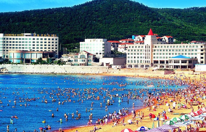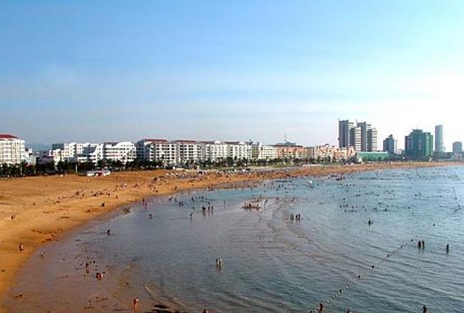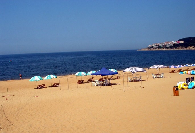 浴場海岸線全長2800余米,東有麻枷山,西有煙墩山,遙相呼應,有萬畝松林帶環(huán)繞,海岸線全長2800余米,沙灘面積為10萬平方米,沙質(zhì)柔細,海水清澈,灘坡平緩,可同時容納4至5萬名游客,點綴于海岸邊的花草、石雕、五色彩棚,更顯風光綺麗,構(gòu)成了一幅山、海、林、人于一體的美麗圖畫。