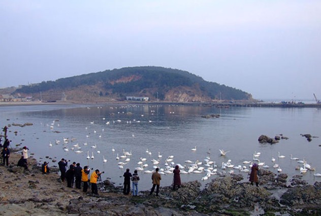 煙墩角位于山東省榮成市位于山東半島最東端,千里海岸灣岬相連,魚蝦貝藻等海洋資源豐富,屬暖溫帶季風(fēng)型濕潤(rùn)所候區(qū),是世界最大的的大天鵝越冬樂(lè)園,已建起了榮成天鵝國(guó)家級(jí)自然保護(hù)區(qū)。每年11月到次年4月,都有上萬(wàn)只來(lái)自西伯利亞的大天鵝在榮成沿海眾多的湖泊、海灣越冬。這些海灣、湖泊就是人們常說(shuō)的榮成天鵝湖了。煙墩角天鵝湖就是其中之一。