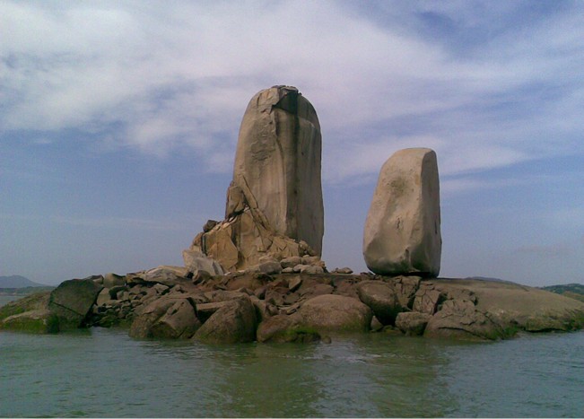 從看澳村岸邊坐渡船,十幾分鐘就到達(dá)礁石上,礁石底部是一組平坦完整的巖石。兩個石柱均由粗?;野咨幕◢弾r組成 東側(cè)的一個高達(dá)33米,胸寬9米,厚8米;西側(cè)的一個高17米,胸寬15米,厚8米。版權(quán)所有山東聊城聊之旅國際旅行社有限公司,轉(zhuǎn)載必究!兩個石柱的底部都是近似四方形體,直立在礁石上。據(jù)地質(zhì)學(xué)家考證是世界上最大的花崗巖球狀風(fēng)化海蝕柱。由于它的奇特壯觀,對游人有著強烈的震撼力和吸引力。建設(shè)部與中科院的專家稱之為:“壟斷性的世界級旅游資源。”明代旅行家陳第曾譽之為“天下奇觀”, 清朝女詩人林淑貞詩贊:“共說前朝帝子舟,雙帆偶趁此句留;料因濁世風(fēng)波險,一泊于今纜不收.