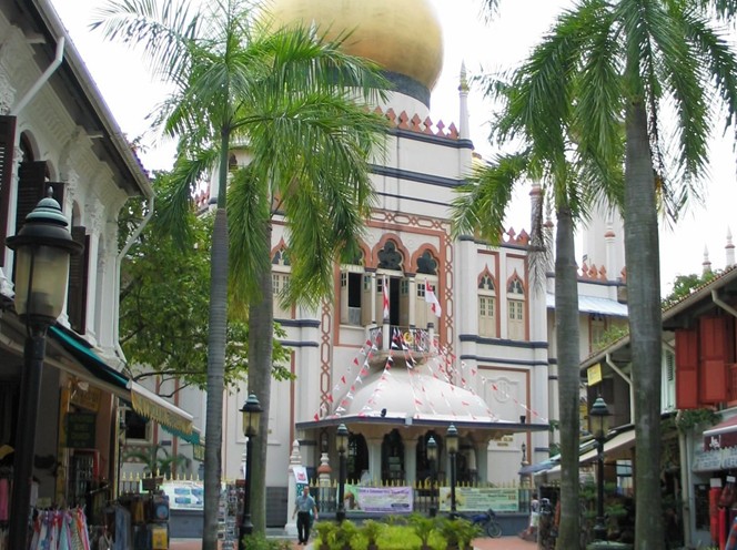 蘇丹回教堂(Sultan Mosque)是新加坡5座被列為國家古跡之一的回教堂,外觀最堂皇的。它有洋蔥型的大圓頂,對稱的宣禮塔,有點(diǎn)像印度的泰姬陵?;亟烫梦挥诟拾窀衲蠚v史保留區(qū),建造于20年代,歷史雖然并不是最悠久的,但是這座回教堂對本地回教徒來說卻有特別意義。主要的原因是甘榜格南是新加坡最悠久的回教族群聚居地。這里不少街道都是以中東地名命名的。