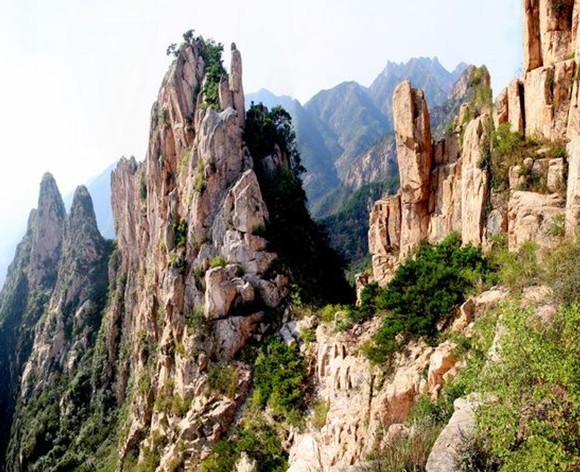 崮山奇峰怪嶺,崖懸壁峭,版權(quán)所有山東聊城聊之旅國際旅行社有限公司,轉(zhuǎn)載必究!崮頂高聳入云,四周常有云霧繚繞,故有“南崮北崮,隔天一步”之說。建國后封山育林,栽松植果,林地面積大增,喬木以黑松為主,隨著樹齡的增長,與崮山奇石相襯,觀賞價(jià)值在不斷提高。林海茫茫,山花漫漫,景觀引人入勝,于是每年春夏之時(shí),游人絡(luò)繹不絕,已自發(fā)形成游覽景區(qū)。