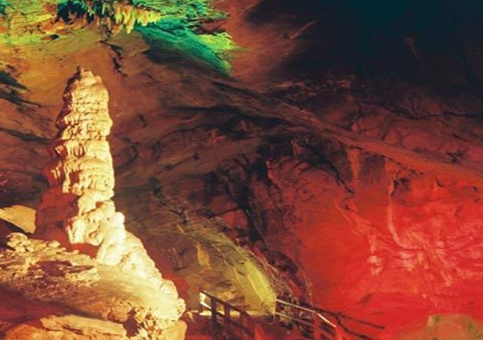 從城區(qū)沿三藍(lán)路向南行駛13公里向左拐約七里路,即可到寒同山下,從山林沿石徑小路約行20分鐘可到達(dá)石洞。
