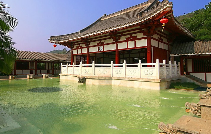 九龍池位于玉溪市州城西北10公里奇黎山下的九龍池,又名奇黎溪, 是當(dāng)?shù)刂募丫皠俚刂?。位于玉溪市州城西?0公里奇黎山下的九龍池,又名奇黎溪, 是當(dāng)?shù)刂募丫皠俚刂弧?據(jù)《重修九龍池碑記》載, 寺廟初創(chuàng)于清朝之前, 幾經(jīng)擴(kuò)建,到公元1729年(雍正七年),又“新作石橋,長虹臥波,幾于騰空直上。繼修大寺閣,燃然一新,儼若普陀”。