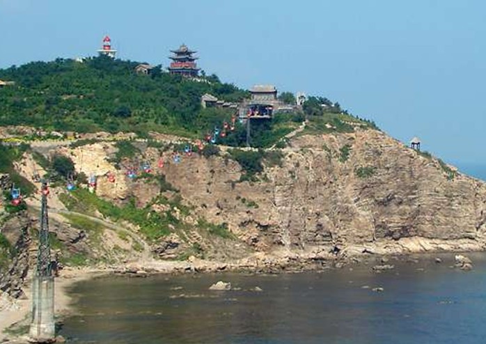 田橫山俗稱老北山,地處蓬萊陸地最北端,也是膠東半島最北端,這塊突入海中的陸地岬角稱為登州岬或蓬萊岬,是渤黃二海的分界處,具有“一山分二海”的獨(dú)特地理位置。東與丹崖山隔一小海灣相接,石壁高峻;西、北兩面半浸海中,形勢險要。漢時韓信破齊,齊王田橫率其徒五百人東走,曾筑寨于此,因此得名。明萬歷二十一年(1594年),為鞏固海防,明廷調(diào)浙江兵卒于此戍守,在山上筑起城垣和署衙廨宇。清光緒二十年(1895年),中日甲午戰(zhàn)起,登州統(tǒng)領(lǐng)夏辛酉在山上筑起炮臺,架起愛母斯郎炮數(shù)門,守護(hù)??冢鏋槁庙樦曉?。這里既有山海勝境,又有歷史遺跡,隨著旅游事業(yè)的發(fā)展,到這里探古覽勝的游人不斷增加。 1993年,田橫山與丹崖山之間架起了一條跨海索道,這里成為蓬萊閣旅游區(qū)的一個組成部分。在跨海索道上乘坐纜車,仰望前后兩側(cè)的仙山瓊閣,俯瞰大海的萬里澄波,聯(lián)想三神山的迷人神話,會不由自主地產(chǎn)生一種飄飄欲仙的感覺。(跨海索道全長481米,高點(diǎn)海拔50.7米,相對落差26.3米,采用單循環(huán)半包吊椅式結(jié)構(gòu),共設(shè)纜座54個,日可載客5340人次,是山東省第一條海上索道。它區(qū)別于其它索道的地方就是可以搭乘纜車領(lǐng)略海上風(fēng)光,在感受上是別有情趣的。