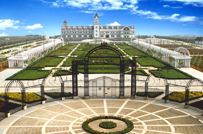 1987年,煙臺成為亞洲唯一的“國際葡萄?葡萄酒城”。2008年,展示“國際葡萄酒城煙臺”葡萄酒風情的標志性景觀——張裕國際葡萄酒城落成并開放。它由張??ㄋ固鼐魄f、酒城之窗、葡萄公園等部分組成,是亞洲首座葡萄酒主題樂園。