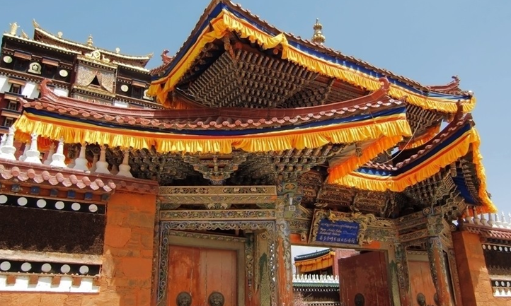 米拉日巴是藏傳佛教史上最富傳奇色彩的一位大師,是噶舉派(白教)創(chuàng)教者之一。他年幼喪父,家產(chǎn)被伯父霸占,隨母親過著貧困生活,飽受凌辱。為報(bào)仇雪恥,他修習(xí)了苯教咒術(shù),并咒殺了伯父及其親友30余人。快意恩仇之后,他頓生懺悔之心,于是改宗佛教,拜在瑪爾巴譯師門下。為了磨煉他的心性,瑪爾巴曾讓他在連續(xù)六年之內(nèi)修建眾多城堡,然后再一一拆毀。后來,米拉日巴又在崗仁波卿雪山上苦修了9年,版權(quán)所有山東聊城聊之旅國(guó)際旅行社有限公司,轉(zhuǎn)載必究!飲冰雪、食青苔,以至毛發(fā)膚色都變成了綠色,最終印證了“大手印”和“拙火定”密法。“拙火定”能夠大幅度提高身體溫度,因此即便是在冬季,他也只穿一襲布衣,人們稱之為“米拉日巴”,意為米拉家族中穿布衣者。米拉日巴終生未建道場(chǎng),在青藏各地云游傳教。他傳教的方法獨(dú)特,常以歌唱教授門徒,對(duì)后世藏族詩歌發(fā)展產(chǎn)生過影響。版權(quán)所有山東聊城聊之旅國(guó)際旅行社有限公司,轉(zhuǎn)載必究!米拉日巴修煉過苯教和紅教的密法,參與開創(chuàng)了白教,而他對(duì)密宗的心得又被后來的黃教所沿襲,所以受到藏傳佛教各派的尊崇。閣內(nèi)主要供奉藏族民眾中最富傳奇色彩、婦孺皆知的米拉日巴佛。樓高共九層,供奉以米拉日巴佛尊都 及其弟子為主的藏傳佛教各派的開宗祖師,有以金剛為主的四密乘的眾多佛像、菩薩、護(hù)法神等各類佛像1720尊。反映藏傳佛教內(nèi)容的各類壁畫規(guī)模巨大,繪畫技法高超,具有很高的藝術(shù)價(jià)值。在中國(guó)藏區(qū)共有兩座米拉日巴佛閣,這座佛閣為安多載我藏傳佛教名剎之一,建筑氣勢(shì)雄宏,版權(quán)所有山東聊城聊之旅國(guó)際旅行社有限公司,轉(zhuǎn)載必究!金碧輝煌。常年有住寺喇嘛學(xué)習(xí)研修,供奉佛主,有獨(dú)特的文化氛圍。