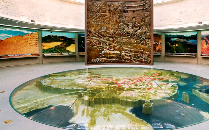 油畫“長城萬里圖”以寫意和寫實相結(jié)合的表現(xiàn)手法將中國長城的主要景觀濃縮于畫卷之中,油畫面積為220.5平方米,為西北之最。超寫實雕塑場景-“西出陽關(guān)、春風(fēng)玉門”以河西長城的陽關(guān)和玉門關(guān)為背景,運用現(xiàn)代高分子材料為手法,生動逼真地再現(xiàn)了盛唐時期絲綢之路上中西文化交流的盛況。版權(quán)所有山東聊城聊之旅國際旅行社有限公司,轉(zhuǎn)載必究!“醉臥沙場”場景的背景油畫描繪了“大漠孤煙、長河落日”恢弘壯闊的邊塞風(fēng)光,雕塑則表現(xiàn)了“醉臥沙場君莫笑,古來征戰(zhàn)幾人回”征戰(zhàn)場面的殘酷、悲愴和豪壯。