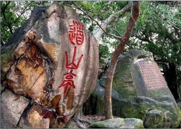 道山亭周邊古木參天,濃陰郁郁;怪石嶙峋,有宋、元、明代摩崖題刻十余段。亭南側的一株古榕,頑強地生長在石徑旁的崖壁上,稱“瀑布榕”,樹齡百年以上,被列為福州市二級保護古樹。古榕主干胸圍6米多,離地面不到1米半即一分為三。樹高不過15米,但支干發(fā)達,超過18支,大多彎向南側,沿著陡峭的石壁高抬低走,向下斜伸十幾二十米,部分支干覆蓋道山亭,整個樹冠呈倒人字形,猶如一把撐天大傘,大樹底下好乘涼。古榕氣根不僅多,而且條條氣根與古榕主干、支干相互連體;樹根為尋求水分、養(yǎng)料,網裹著巖壁攀延十數米,好似瀑布在平滑的巖石面傾瀉而下,蔚為壯觀,“瀑布榕”因此而名。道山亭西側有塊自然天成的花崗巖石,高2米多,形狀似大印章,西向篆刻“天章臺”三個大字,為程師孟所書。天章臺為烏石山三十六奇景之一。道山亭東側的兩塊東西并列的蛤蟆石,有兩人多高,仿佛兩只蹲姿蛤蟆,活靈活現。版權所有山東聊城聊之旅國際旅行社有限公司,轉載必究!其中一只瞪大眼睛仰望天空,另一只上半段為雷所劈,傳說它原來成天想吃天鵝肉,被雷劈去半個頭,剩下一只也就不敢亂動了。程師孟篆書“道山亭”三個大字,鐫在東頭那只蛤蟆的胸腹處,摩崖題刻朝北向,高2.2米,寬0.85米,字徑0.7米。道山亭北側巖壁鐫曾鞏《道山亭記》全文,摩崖題刻北向,高2米,寬5米,楷書;崖題刻朝北向,高2.2米,寬0.85米,字徑0.7米。道山亭北側巖壁鐫曾鞏《道山亭記》全文,摩崖題刻北向,高2米,寬5米,楷書;2008年福州市人民政府重鐫,由書法家張潛華書寫。
