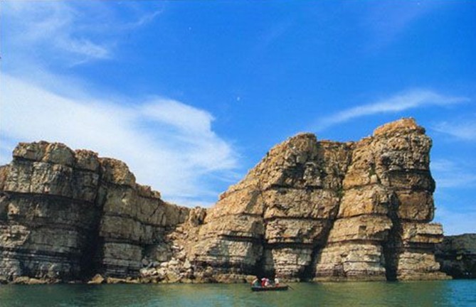 島之東北角有兩塊突兀的礁石,版權所有山東聊城聊之旅國際旅行社有限公司,轉載必究!一高一低,高的約39米,低的約30米,遠遠望去,酷似大海上升起的兩張風帆,名曰石帆礁,也稱姊妹峰,漁民叫它“兩棵桅”。高山島的西南角,有一條長50米的海蝕洞名曰“鎖龍洞”,傳說這里是仙人懲罰龍王三太子的地方。此洞前后連通,洞深幽長,第當海浪涌進,便會發(fā)出深厚凝重的“嗡嗡”聲。高山島的本南角是全島最陡峭的地方,人稱“摩天嶺”,奇妙的是:高陡的崖壁到了底部卻突然懸空,共有4根粗壯的石柱支撐著,將島的一角分成4個洞口,洞洞相連,從任何角度看都象大象鼻的造型,稱為“象鼻洞”。高山島也是鳥的天堂,堪稱“萬鳥島第二”。高山島的美景可以用這樣的詩句來概括:“列嶂參差煙霧薄,一山環(huán)繞水云間”“南瞻大海波濤涌,北顧高峰蒼翠浮”。