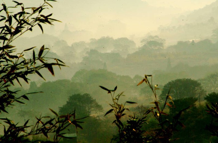 海陽云頂自然風景旅游區(qū)位于海陽市盤石店鎮(zhèn)大莊村西側,招虎山北麓。這里群山環(huán)抱,古樹參天,空氣清新,泉多水清,翠竹叢生,周圍4800畝山嵐至今保持著良好的生態(tài)環(huán)境,近千種動植物生機勃勃。尤其令人驚嘆的是這里竟然生長著500余畝郁郁蔥蔥的竹子。據林業(yè)專家稱,這片江北最大的竹林,起源于何時已無從考究。但在北緯37º地區(qū)能有如此規(guī)模的竹林,舉世罕見。