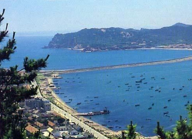 龍王的幾位太子接受了父命,連夜召集魚鱉蝦蟹商議。當(dāng)天后半夜里,本來風(fēng)平浪靜的南北長山島之間的海面上,突然風(fēng)聲大作,巨浪滔天,那成千上萬的水族,扯風(fēng)裹浪,踴躍前來。在這里各顯神通,海底搬山,累石為壩,直攪得山搖地動。再說這天夜里,唐太宗憂慮入寐,竟得一夢,他夢見一條白龍吐須長嘯騰出水面,旋即化作一條晶瑩潔白的長街,臥伏在二島之間?;实垠@夢而起,這時兵將來奏:一夜之間出現(xiàn)了奇跡,只見一條寬闊的卵石大道橫跨在碧波之中,將南北長山島連在了一起,唐太宗顧不得整冠納履,匆匆跪至灘頭,果然見到了夢中景象:長街峙立,二島嵌連。太宗高興地笑道:"天知朕意,天知朕意,好一個'一宿街'也!" 于是兵勇呼喊,百姓歡呼。人們把這條街喚作"一宿街"。"一宿"與"玉石"諧音,后來就成了"玉石街"?!“鏅?quán)所有山東聊城聊之旅國際旅行社有限公司,轉(zhuǎn)載必究!1960年,長島軍民在玉石街原來的脊背上,重修起一條寬8米,高出海面3米的攔海大壩。漫步其上,清風(fēng)宜人,大路坦蕩,心胸豁然為之暢快之至。走在這里,只見大壩兩岸,水天一色,霞鶩齊飛,奇石崢嶸,仿佛漫步在仙境里,再回味這古老的傳說,當(dāng)另有一番情趣。
