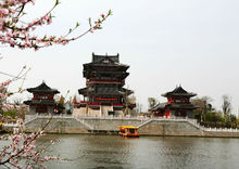泰州是一座水的城市。水是泰州的特色和靈魂。哺育世世代代泰州人的鳳城河,千畝水域繞城四周,是江蘇省現(xiàn)存的為數(shù)不多的較完整的千年古城河。泛舟河上,您會(huì)充分領(lǐng)略到“州建南唐”的歷史厚重。鳳城河畔,望海樓、桃園景區(qū)內(nèi)30多個(gè)景點(diǎn)匯集了泰州歷史、戲曲、民俗、商賈四大特色文化。景區(qū)內(nèi)核心景觀望海樓,始建于宋,明清重建,更領(lǐng)江淮雄風(fēng),國學(xué)大師文懷沙老人稱其為“江淮第一樓”。樓西文會(huì)堂,史載初為北宋滕子京所建。列北宋時(shí)在泰為官,而后升遷至宰相的晏殊、范仲淹、富弼、韓琦、呂夷簡五相史料,堂前植“五相樹”;立中國雕塑院院長吳為山所作范仲淹青銅塑像,加之以景區(qū)內(nèi)的已有千年之久的州城遺址和宋城古涵等景點(diǎn),一切盡顯泰州“州建南唐,文昌北宋,名城名宦交相重”的輝煌歷史。望海樓隔河為桃園景區(qū),取孔尚任寄寓泰州陳庵創(chuàng)作《桃花扇》之意,與泰州梅園戲劇、柳園評(píng)話相聯(lián),三園一線,形成“戲曲文化三家村”的獨(dú)特人文旅游景觀,徜徉其中,宛若行走于中國戲曲文化之長廊。景區(qū)內(nèi),鳳凰姑娘、飛來鐘、齏湯橋等一個(gè)個(gè)美麗的民間傳說同樣使人流連忘返。桃園東側(cè)六百米長的麻石老街,青磚黛瓦,展現(xiàn)了明清至民國時(shí)期的泰州古街巷,皮包水、水包皮,戲院書場,泰州古城的草根文化在這里盡現(xiàn)。該景點(diǎn)已被定為國家AAAA級(jí)風(fēng)景區(qū)。