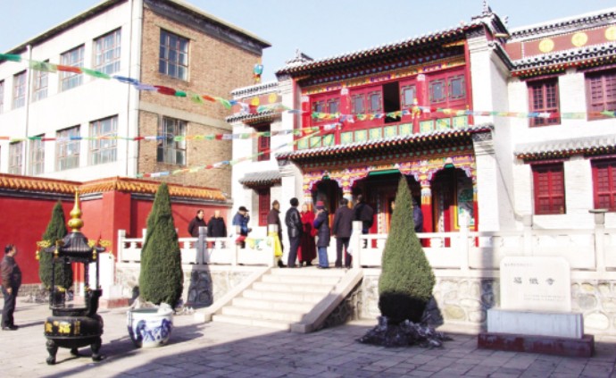 位于包頭市東河區(qū)拐子街,約建于清乾隆年間,又名"福徵寺",是包頭城內唯一的一座蒙古族召廟,藏式建筑結構,磚石墻壁,用石灰水澆灌成純白色,兩層樓堂,底層為經(jīng)堂,內無間墻,兩排圓木柱直通到頂,樓上分為前后兩座佛堂,分別供奉釋迦牟尼和其它塑畫神像。正前方是滿面門窗,外有護欄走廊,東西墻壁設長方形小窗,環(huán)召有通行走廊和花欄圍墻,在召廟兩側,有兩所大院,版權所有山東聊城聊之旅國際旅行社有限公司,轉載必究!設有客堂、廳舍、廚房貨倉、馬棚馬圈等,總面積約7000平方米。