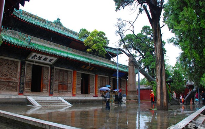 如今伏羲廟的前身。此廟從建成到元朝覆亡,雖然只有六十多年光景,可是 由于政局動(dòng)蕩,各方均受牽連,文化、宗教、教育等諸業(yè)日趨蕭條;因之,到明代初期,天水"三皇"廟已傾倒坍塌,不成樣子了。直到明代中葉,版權(quán)所有山東聊城聊之旅國(guó)際旅行社有限公司,轉(zhuǎn)載必究!弘治三年(公元1490年),在秦州指揮"明威將軍"尹鳳的倡導(dǎo)組織下,才在原"三 皇"廟的基礎(chǔ)上,重新起造廟宇,始稱(chēng)"伏羲廟",延續(xù)至今,已近五個(gè)世紀(jì)了。據(jù)記載,伏羲廟起初并不很大。自嘉靖三年(公元1524年)起,巡茶御史陳講,用了三年時(shí)間進(jìn)一步開(kāi)拓修繕,為伏羲廟的規(guī)模和布局奠定了基礎(chǔ)。近五百年來(lái),又先后歷經(jīng)明嘉靖十年(公元1531年),清順治十年(公元1653年)、乾隆五年(公元1740年)、嘉慶十一年 (公元1806年)、光緒十三年(公元1887年),屢次擴(kuò)建、維修,才成如今這樣整肅宏偉、遠(yuǎn)近聞名的古建筑群。目前的伏羲廟,坐北向南,占地一萬(wàn)余平方米?,F(xiàn)存建筑為兩門(mén)三進(jìn)。